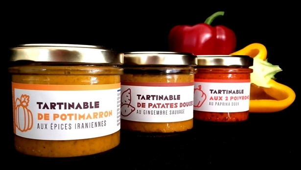 Menu veggie : soupe, 3 tartinables végétariens 3x100g (au choix : patate douce gingembre et poivre sauvage bio, asperges vertes ail des ours bio, potimarron épices orientales bio, 2 poivrons bio et paprika, butternut au paprika fumé bio, panais au curry bio) et pains spéciaux - 23€